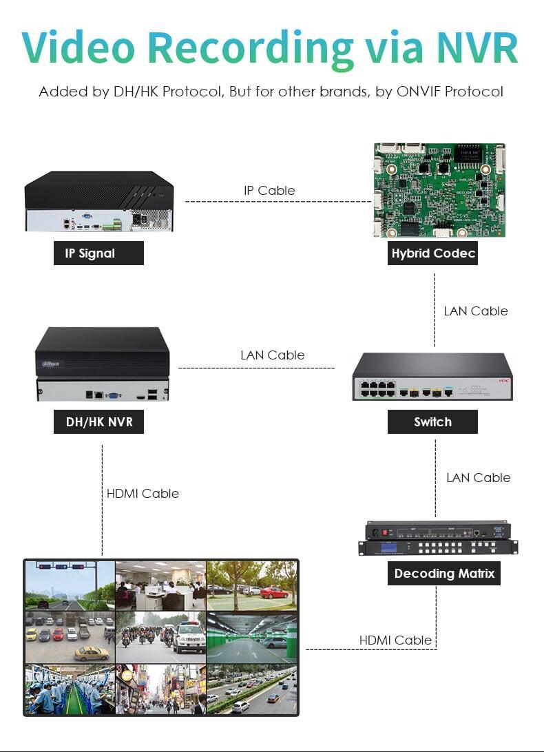 Dual 1080p Decoding: Decodes 2x RTSP/RTMP/TS streams from IP cameras, encoders, or NVRs (Hikvision, Dahua, Axis, EXVIST).