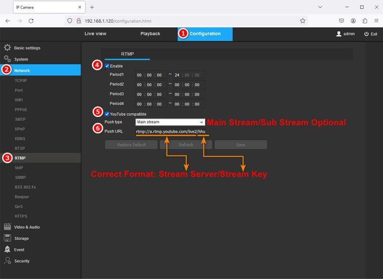 - RTSP (Main Stream)rtsp://192.168.1.120:554/live/1_0