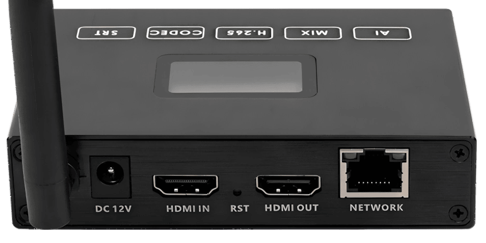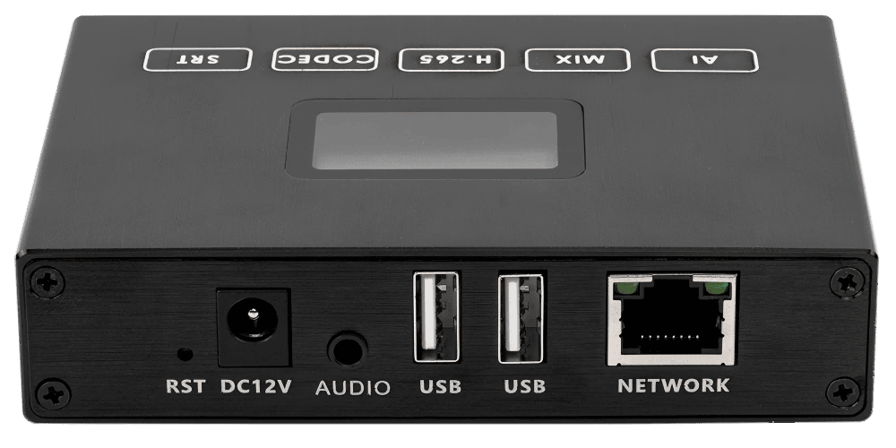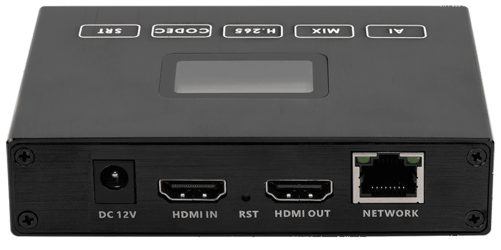 Compresses HDMI/SDI video signals into IP streams for live streaming, recording, and transmission.
