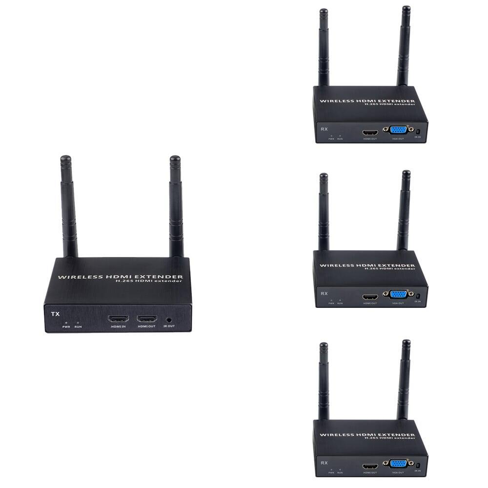 200M/656FT 1080P Wireless HDMI Transmitter(TX) & 3x HDMI+VGA Receivers(RX) Kit